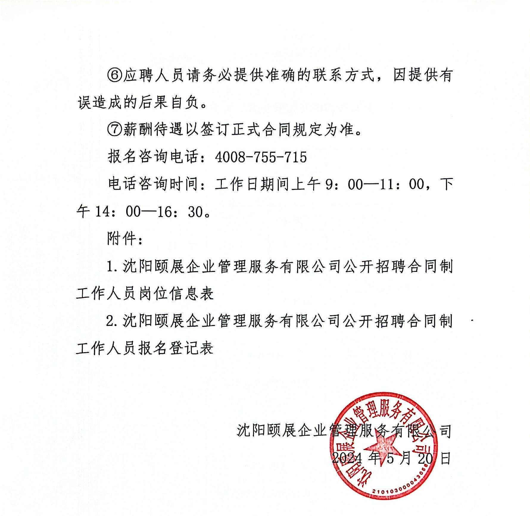招聘單位:沈陽(yáng)頤展企業(yè)管理服務(wù)有限公司